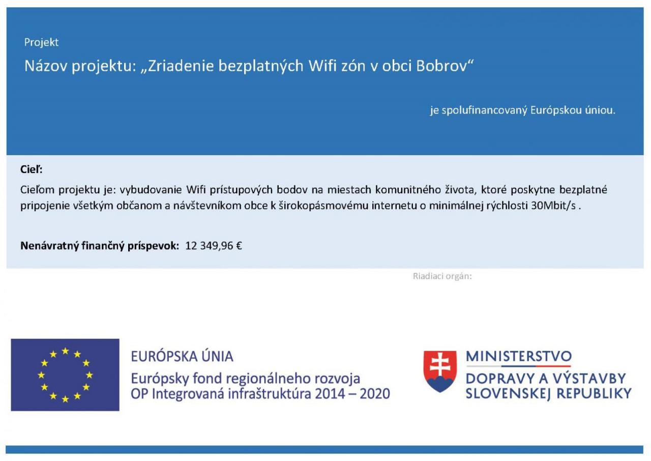 Prijímateľ: Obec Bobrov, Námestie sv. Jakuba 173/3, 029 42 Bobrov