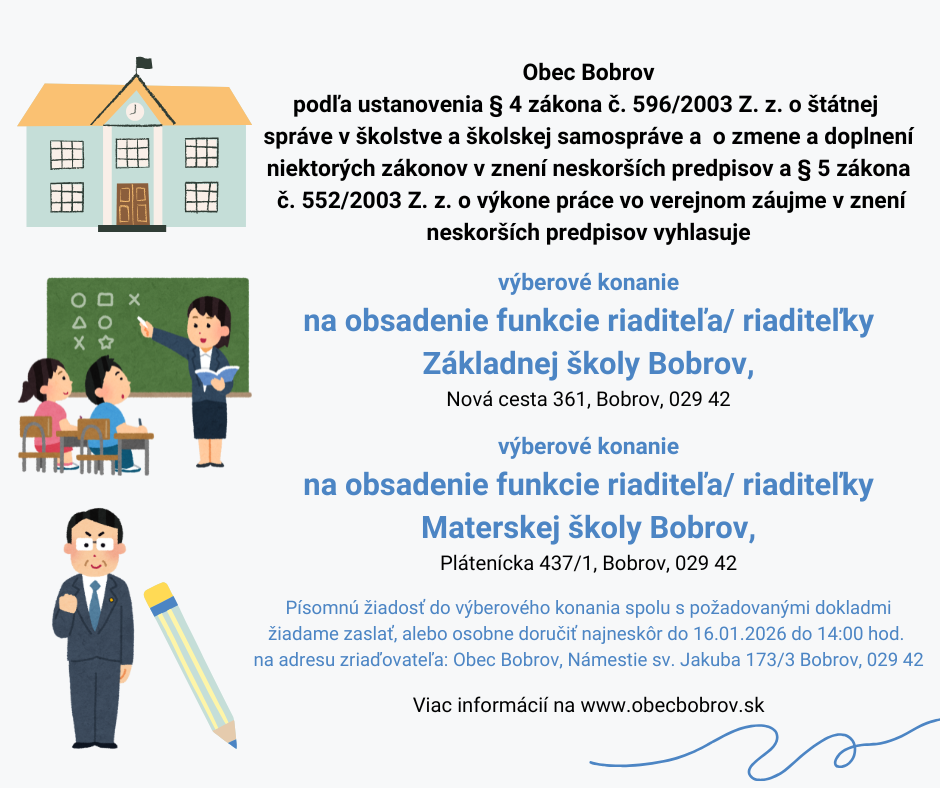 Obálku označte heslom „Výberové konanie – ZŠ Bobrov – neotvárať “.