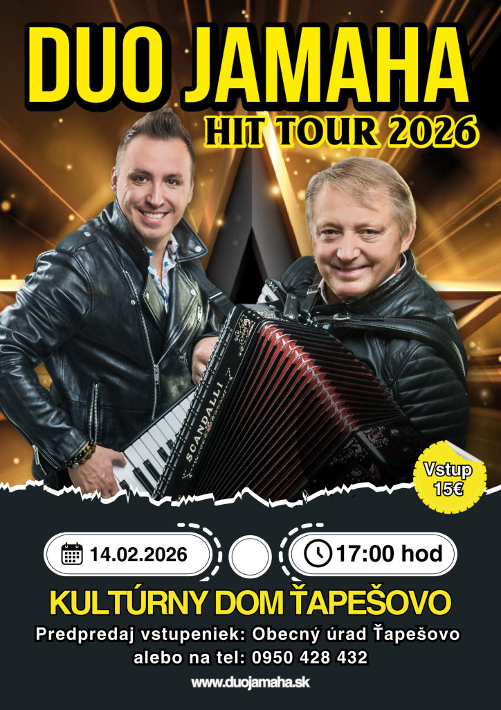 Online na https://www.kupsivstupenku.sk/events/duo-jamaha-tapesovo-14-2-2026/?fbclid=IwdGRjcAO33yJjbGNrA7ffFHNydGMGYXBwX2lkDDM1MDY4NTUzMTcyOAABHk8ceNtUdnafkjCvcriTigPzQ-kkbgq-J6Yh1PsDStvAgIhHBK_C2t4tFxyd&brid=e5ajFMk7Y3w3hypBQRIe5w