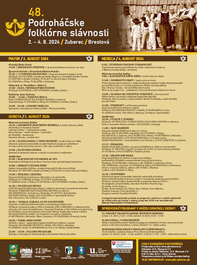 Podroháčske folklórne slávnosti sa budú konať od 2. do 4. augusta 2024, viac info na plagáte.