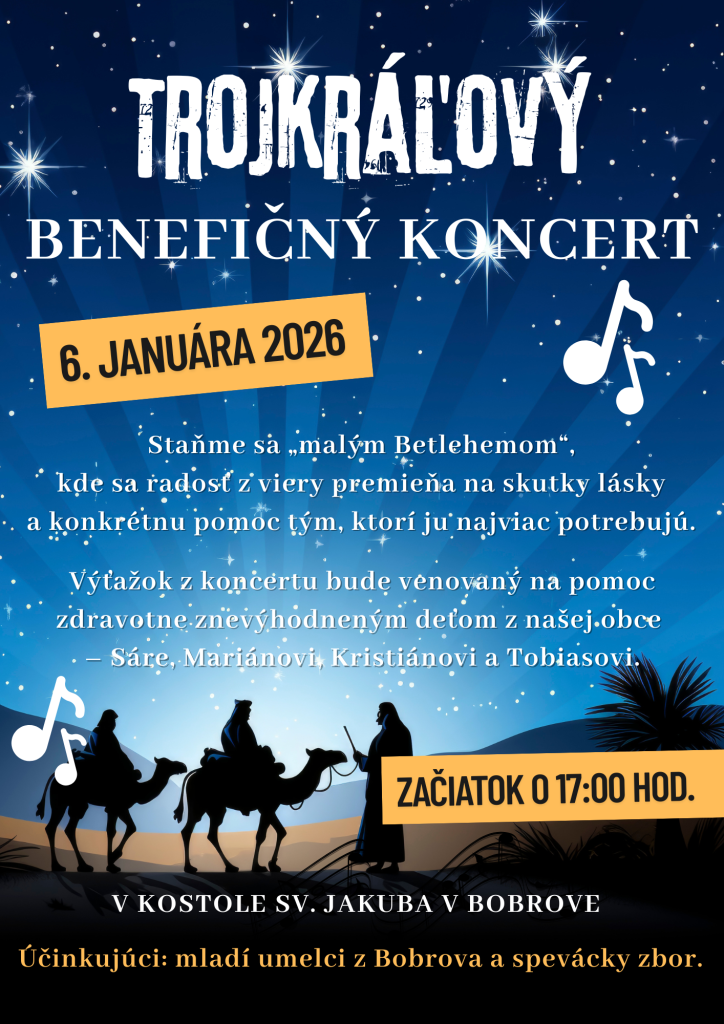 Výťažok z koncertu bude venovaný na pomoc zdravotne znevýhodneným deťom z našej obce – Sáre, Mariánovi, Kristiánovi a Tobiasovi.